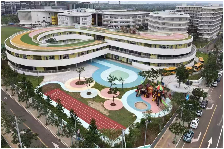 學(xué)校秉承國際化設(shè)計理念,集智慧化學(xué)習(xí)空間、舒適性生活空間、多層次活動空間于一體,涵蓋高級中學(xué)與幼兒園,配套建設(shè)多功能體育設(shè)備和開放式場館、“高顏值”教室、圖書館、多功能禮堂等9棟單體建筑,打造出友好的學(xué)習(xí)氛圍、智能化起居環(huán)境、營造了精彩的生活社區(qū)。可供1728個高中學(xué)位與450名幼兒學(xué)童。